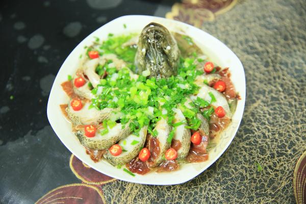 制作方法:鱸魚(yú)洗干凈,先將魚(yú)頭切下;剪掉魚(yú)鰭,從頭部開(kāi)始,用刀從魚(yú)背往魚(yú)腹切到魚(yú)尾處,切忌不可切斷;將鹽和料酒制作成的混合物抹遍魚(yú)全身,腌制15分鐘備用;生姜、蔥切絲,墊在盤子底部,將腌好的魚(yú)擺出孔雀開(kāi)屏的造型,魚(yú)頭放在最前面,尾巴部分也可單獨(dú)切下來(lái),放在魚(yú)頭下方;擺好造型后,在每一塊魚(yú)肉中間夾入一小片火腿,再在魚(yú)上鋪一層姜蔥絲,冷水入鍋,大火蒸10分鐘即可出鍋;出鍋后,去掉上面的姜蔥絲,淋上一點(diǎn)生抽,再放上適量蔥末;鍋內(nèi)倒油,燒熱后淋到魚(yú)上,再放上若干紅辣椒裝飾即可。
