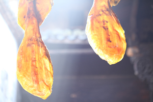 沒有優(yōu)質的豬種,就沒有優(yōu)質的火腿,這是火腿界質樸的真理。許多人都把火腿想當然地理解為腌臘肉,事實上,火腿屬于發(fā)酵肉,與葡萄酒、奶酪同屬于發(fā)酵類食品。制作火腿過程中,除了腌制清洗風干程序之外,最重要的過程是發(fā)酵熟化。 從火腿生產到最終完成,至少需要一年的時間,如果想得到一支高水準的火腿,則需要三年的“陳釀”。